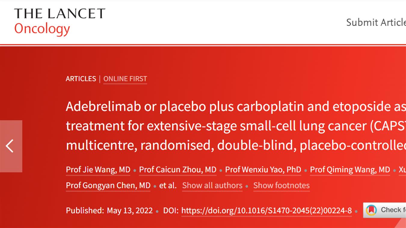 • w66旗舰厅卡瑞利珠单抗联合阿帕替尼最新研究成果荣登《柳叶刀·肿瘤》